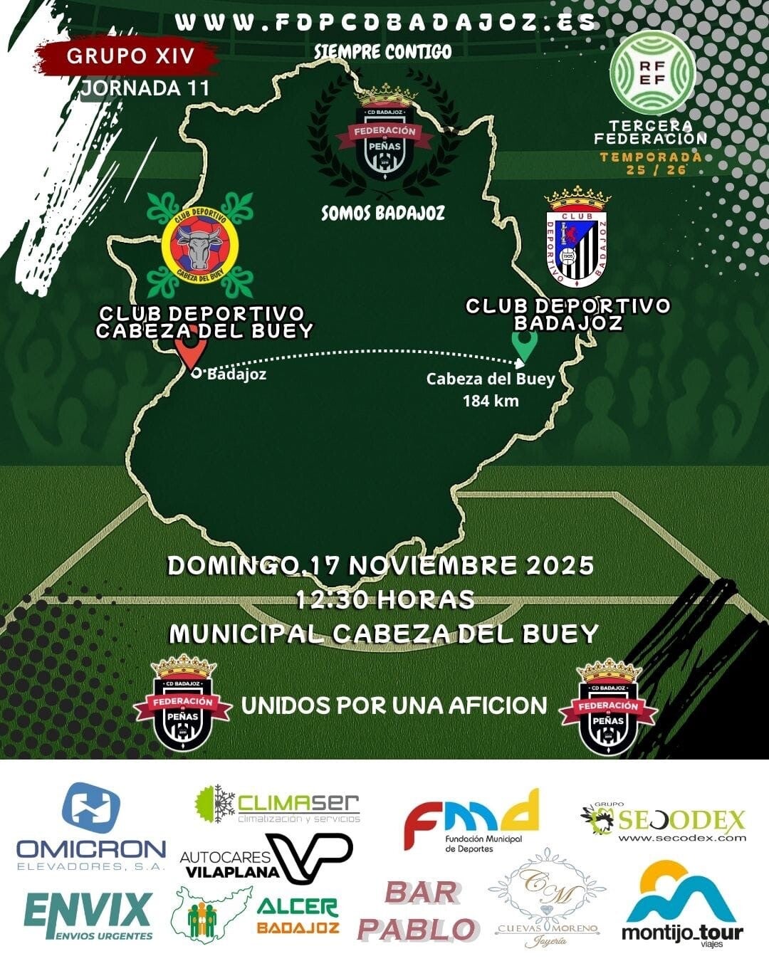 Mañana las peñas tenemos planazo, nuestros hermanos de @fepecdext (Federación de Peñas del CD Extremadura) ponen la previa y la @FdP_CDB (Federación de Peñas del CD Badajoz) pone el bus.
