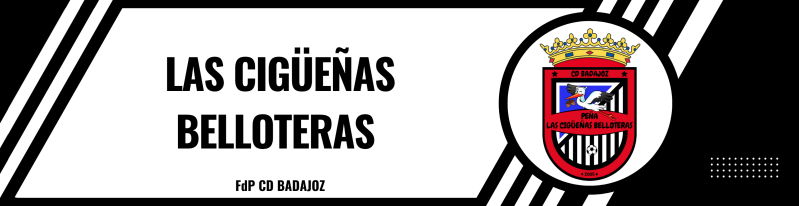 - Descripción: El CD Badajoz, equipo más representativo de la ciudad de Badajoz y, por población, de Extremadura, celebró en la temporada 2005/2006 su centenario. Por entonces, ya merodeaba la sombra de su desaparición y un grupo de fieles seguidores decidieron aportar su granito de arena y fundaron el 1 de julio de 2005 una Asociación Peña denominada "Las Cigüeñas Belloteras - 100 años más negros que blancos". Su finalidad general, no era otra que el club de sus amores se sintiese arropado, ayudándolo a mantener su identidad, siguiéndolo en su camino y, así, poder celebrar sus 100 años de existencia y muchos más. Para confeccionar el nombre de la Peña se decidió aunar a la especie de ave y el fruto más característico de nuestra tierra. La "cigüeña", ave migratoria que "viste" los colores blanco y negro (colores oficiales del club) y que anida en iglesias, postes de la red eléctrica y como no, en las 4 torres de iluminación situadas en las esquinas del estadio Nuevo Vivero y el termino "bellotero", palabra cariñosa que define a los pacenses.